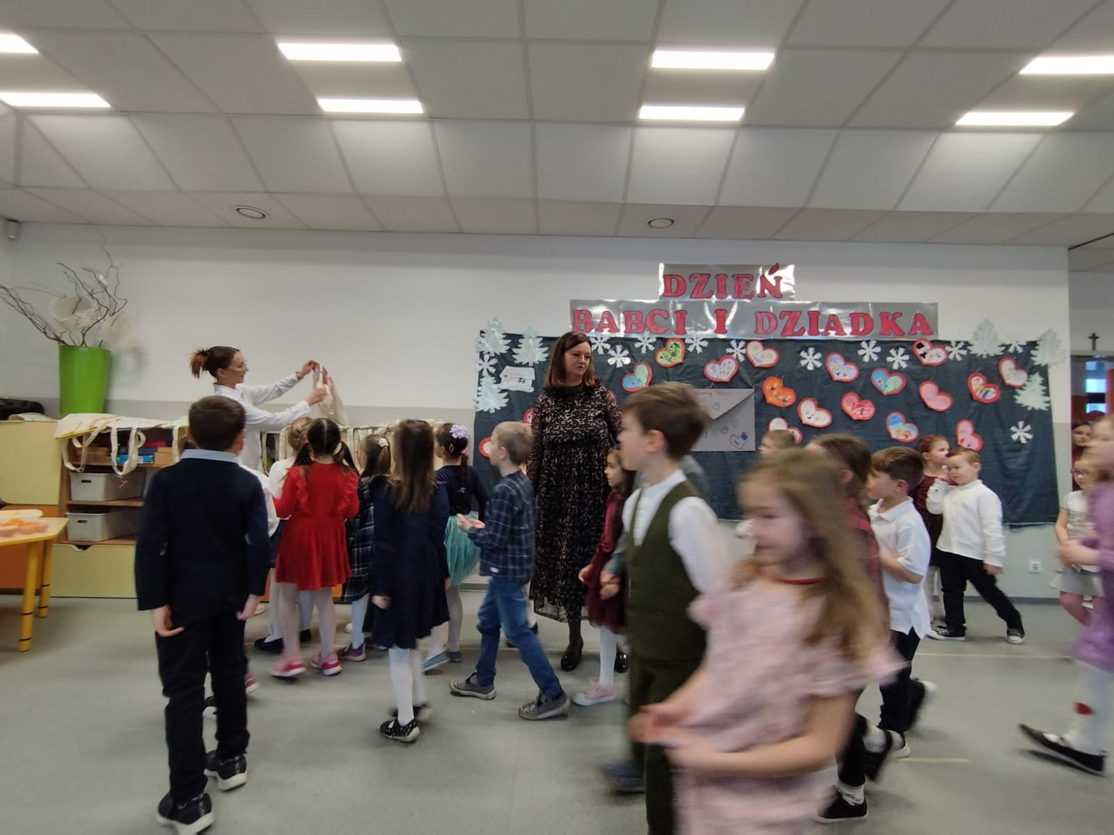 Przedszkolaki prezentowały przygotowane wiersze, tańce i piosenki, dedykowane swoim dziadkom. Wzruszającym momentem było wręczenie prezentów wykonanych samodzielnie przez wnuki. Uroczystość zwieńczona była poczęstunkiem i wspólną zabawą.